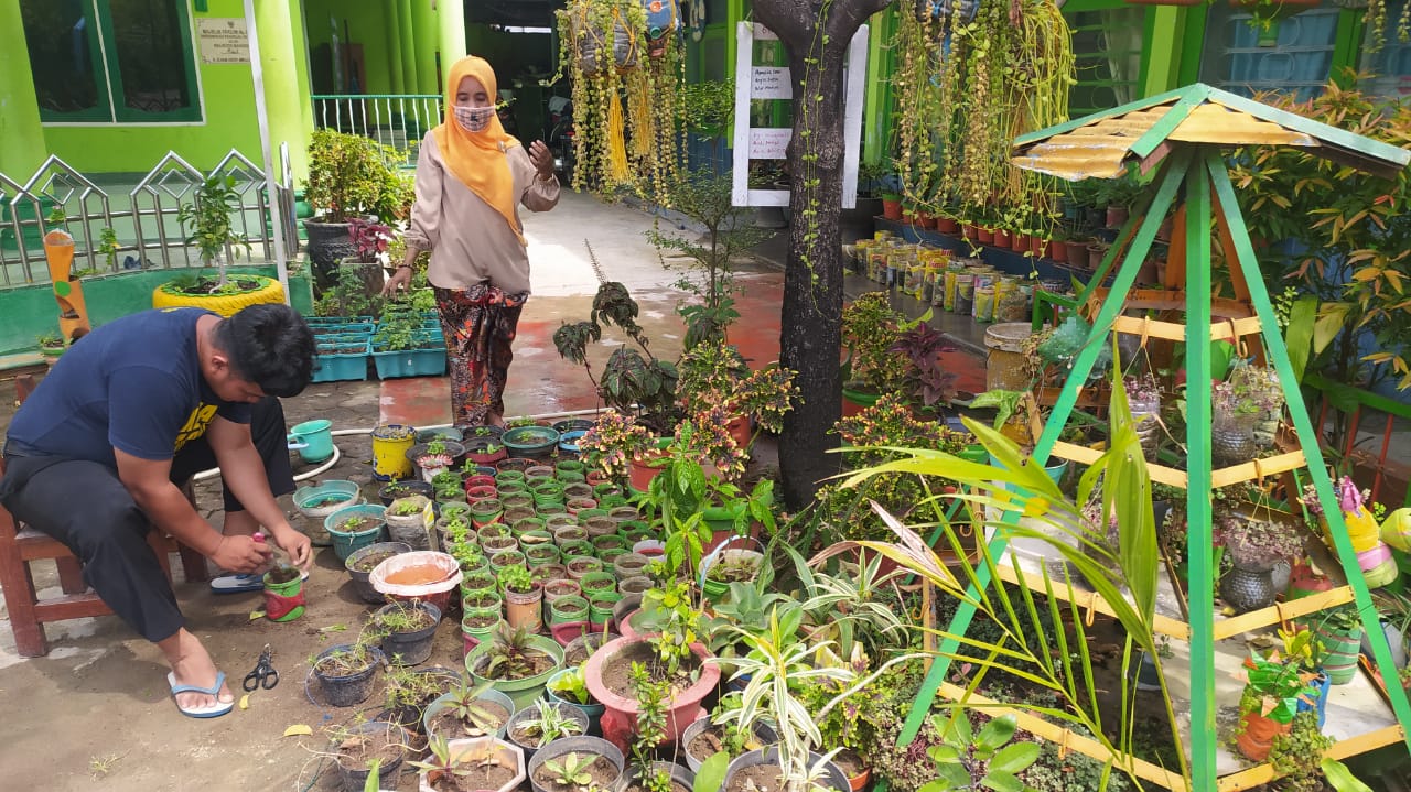 Dra. Hj. Ajawati selaku kepala sekolah mengatakan, budaya peduli lingkungan akan tetap terus berjalan meskipun kegiatan pembelajaran siswa di sekolah ditiadakan untuk sementara akibat pandemi Covid-19.