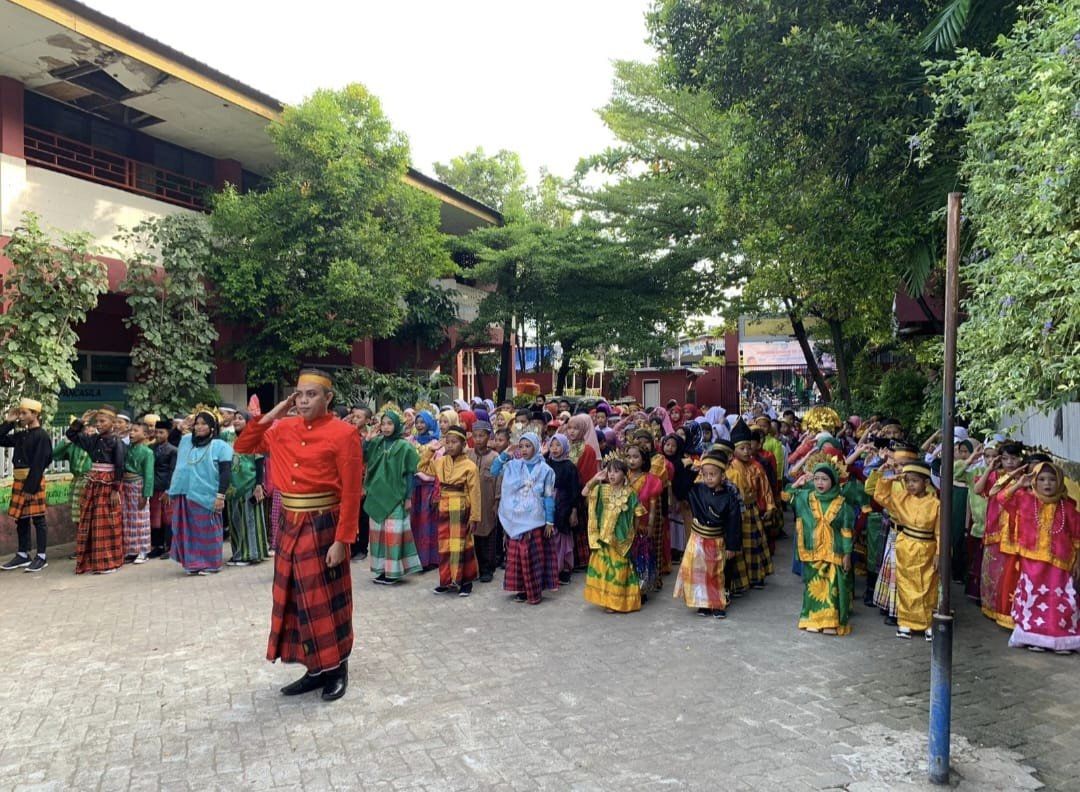 Guru dan siswa mengenakan busana adat dalam kegiatan ini.